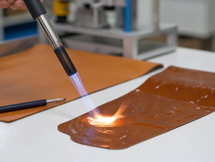 3、火焰施加:使用甲烷校准火焰(热值37MJ/m³),两次10秒火焰接触,记录余焰时间及滴落物引燃情况。